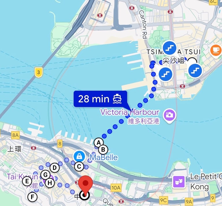 Se alloggi come noi a Tsim Sha Tsui per tornare da lì puoi prendere la MTR dalla stazione Tin Hau (Island Line, linea blu) in direzione Admiralty. A Admiralty cambi linea sulla Tsuen Wan Line (linea rossa) e scendi a Tsim Sha Tsui, in pochi minuti sarai di nuovo nella zona del lungomare o vicino al tuo hotel. Questo permette di risparmiare tempo e di evitare la lunga camminata a piedi.