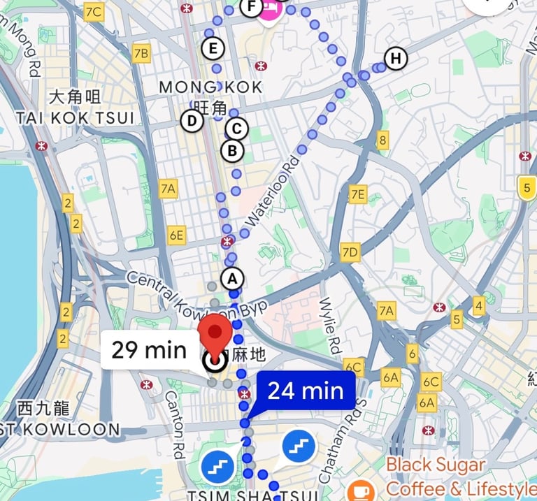 25 minuti di cammino dalla stazione dei treni di West Kowloon