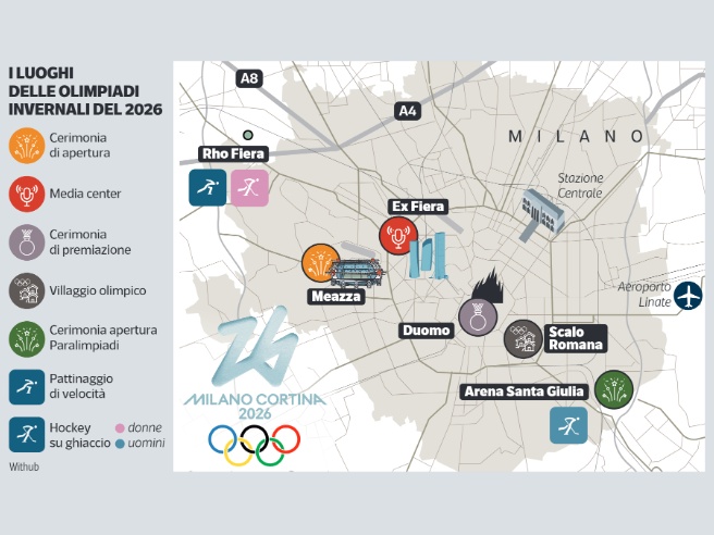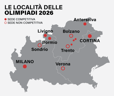 Tutte le sedi incorniciate dalla cerimonia di apertura a San siro e dalla cerimonia di chiusura all'Arena di Verona