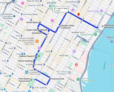 Gli itinerari che seguono si basano sulla mia esperienza personale e sulle mappe che ho utilizzato durante il mio viaggio del 2022. All’epoca avevo segnato ogni percorso con un pennarello (per fortuna! 😂) e ora li ho ricostruiti qui. Inoltre, ho avuto il supporto prezioso di mia zia: avendo visitato New York una ventina di volte, si può dire che sia una vera esperta della città.