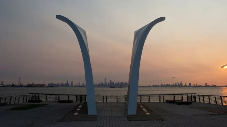 Appena sbarcati a Staten Island, a pochi passi dal terminal, si trova un luogo di grande intensità emotiva: il Staten Island September 11 Memorial, conosciuto anche come The Postcards. Due alte pareti bianche, curve come ali aperte, si innalzano verso Manhattan — simbolo delle cartoline che non sono mai arrivate. Su ogni parete sono incisi i nomi, i volti e le date di nascita delle 274 persone di Staten Island che persero la vita l’11 settembre 2001.