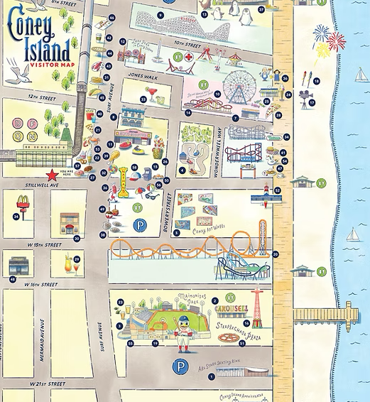 Inaugurato nel 1903 da Frederic Thompson e Elmer “Skip” Dundy, Luna Park fu uno dei primi parchi tematici d’America con oltre un milione di luci e attrazioni rivoluzionarie per l’epoca. Oggi è un ibrido tra passato e presente, ma conserva quell’energia circense e sfacciata.