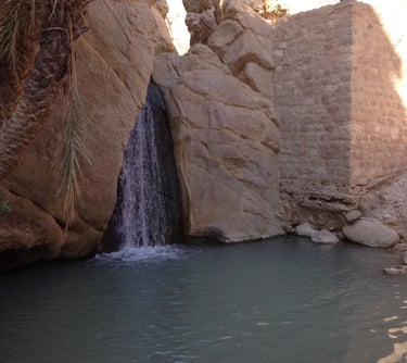 Il viaggio continua in jeep verso le oasi di montagna: Tamerza e Mides. L’acqua scorre tra canyon rocciosi, formando cascate improvvise e creando angoli di frescura inaspettata. Più tardi, tra le rocce scolpite dal vento di Ong Jemel, si respira un’atmosfera quasi irreale. Le formazioni rocciose sembrano opere d’arte naturali, e chi ha visto Star Wars riconoscerà subito il paesaggio che ispirò Tatooine.