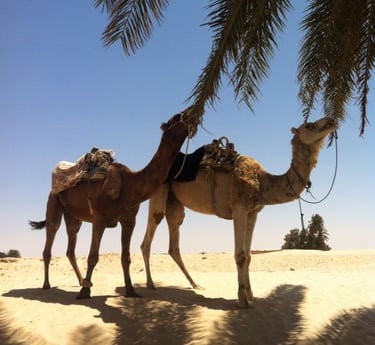 Nel pomeriggio si arriva a Douz, conosciuta come la “porta del deserto”. Qui il tramonto assume sfumature dorate e rosa sulle dune, mentre cammelli e guide locali attendono di accompagnarti in un giro indimenticabile. La notte si dorme in un campo tendato sotto un cielo stellato incredibile, dove ogni stella sembra raccontare una storia del deserto.